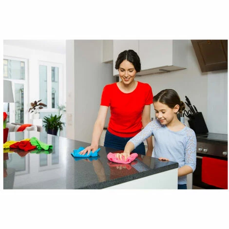 Präsentation : Dieses VILEDA-Set aus 8 bunten Mehrzweck-Mikrofasertüchern ist perfekt, damit Ihnen nie die Tücher ausgehen. Sie sind alle für die Trockenreinigung oder zum Aufsaugen geeignet und haben die Mae 30 x 30 cm. Die verschiedenen Farben ermöglichen es Ihnen, jedes Tuch zu variieren oder einem Raum zuzuordnen. Mit diesen 8 Tüchern sind Sie bestens ausgerüstet, um Ihr Zuhause gesund zu halten.