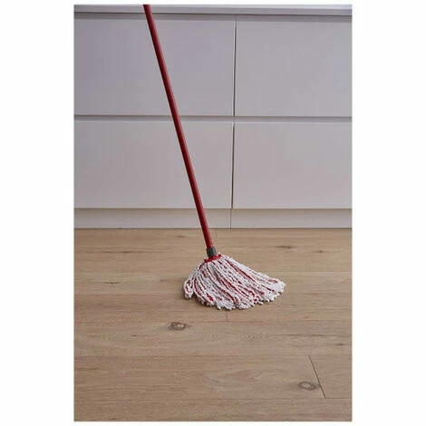 Präsentation : Dieser VILEDA 2-in-1-Mikrofaser-Mopp mit Universalkopf ermöglicht Ihnen einen sofortigen Einsatz zur Reinigung Ihres Bodens. Die Schnüre des Wischmopps sind auf eine bestimmte Weise geflochten, um zu verhindern, dass Fäden verloren gehen. Die roten Schnüre sind am effektivsten, da sie hartnäckigen Schmutz angreifen, ohne Ihren Boden zu verkratzen. Weie Schnürsenkel wiederum haben den Vorteil, dass sie gut absorbieren. Die Kombination aus beidem führt zu einer qualitativ hochwertigen Reinigung.